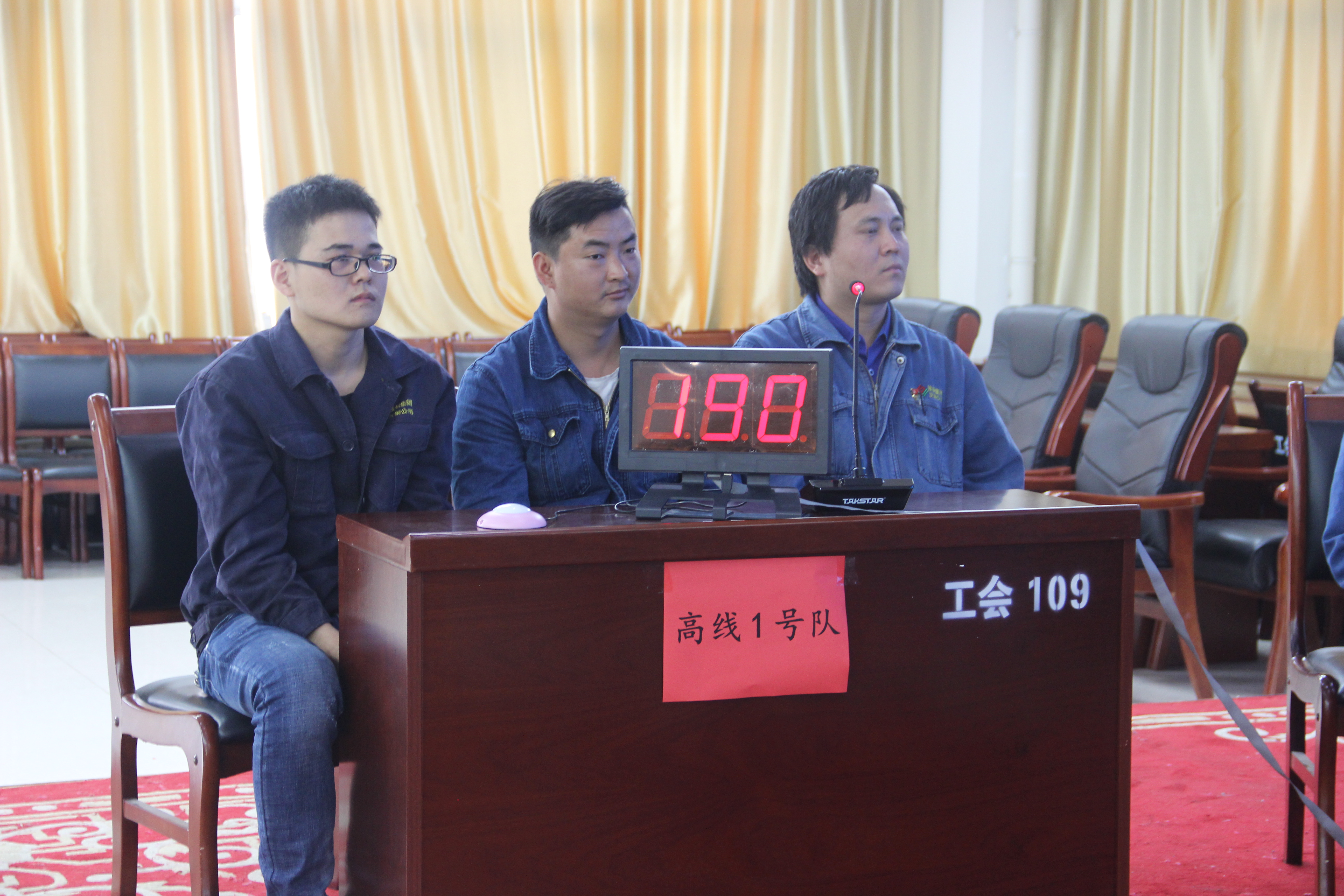 第一環節,“風云初動”即必答題,每名員工的實力展露無遺。巾幗不讓須眉,最讓人驚嘆的是三名女工組成的棒線1號隊,她們的答題準確率非常高,第一輪比拼結束,她們得分名列前茅,這與平時的勤奮學習、心思縝密分不開。第二環節“爭分奪秒”為搶答題,此環節將整場比賽的氣氛推向了高潮,主持人“開始搶答”話音剛落,每個參賽隊都搶著摁下搶答器,一秒之差,搶到幸運機會的個個歡喜,沒搶到的繼續摩拳擦掌,躍躍欲試,準備下次一舉得勝。最后一個環節“險中求勝”為有風險的搶答題,賽制規定答對題目加雙倍分,做錯會扣分,即使這樣嚴格,可依舊阻擋不了大家的熱情。三個環節中還分別穿插觀眾互動題目,營造全員參與,相互提高,共同學習的濃厚氛圍。